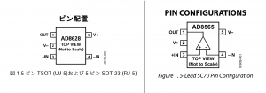 同じSC70というパッケージ製品でも、TL071HとAD8565はレイアウトが違って「使い分ける」ということも出来ません。